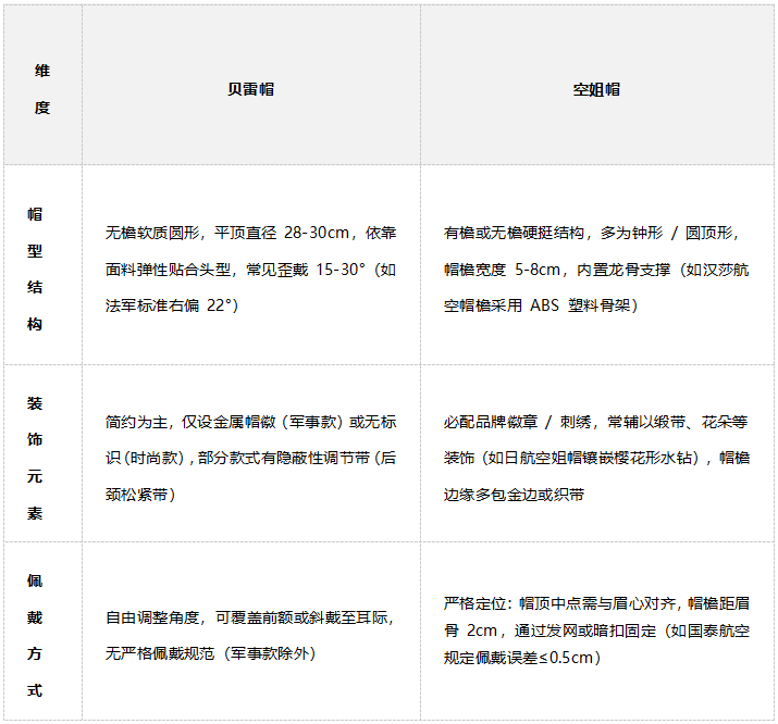 貝雷帽與空姐帽的差異:從歷史脈絡到現代工藝的深度解析