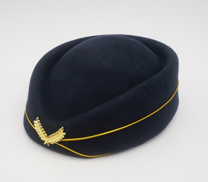 國內空姐帽以“端莊規范、統一標準”為核心,凸顯民航服務的專業性。主流帽型為貝雷帽、簡約小禮帽,線條挺括,與制服完美契合,展現空姐優雅形象。色彩多采用藏藍、墨黑等經典色系,搭配航司LOGO刺繡,強化品牌辨識度。部分航司融入中式元素,如山航飛行帽帽徽蘊含“天圓地方”美學,南航“小紅帽”的木棉花刺繡呼應廣州地域特色。?